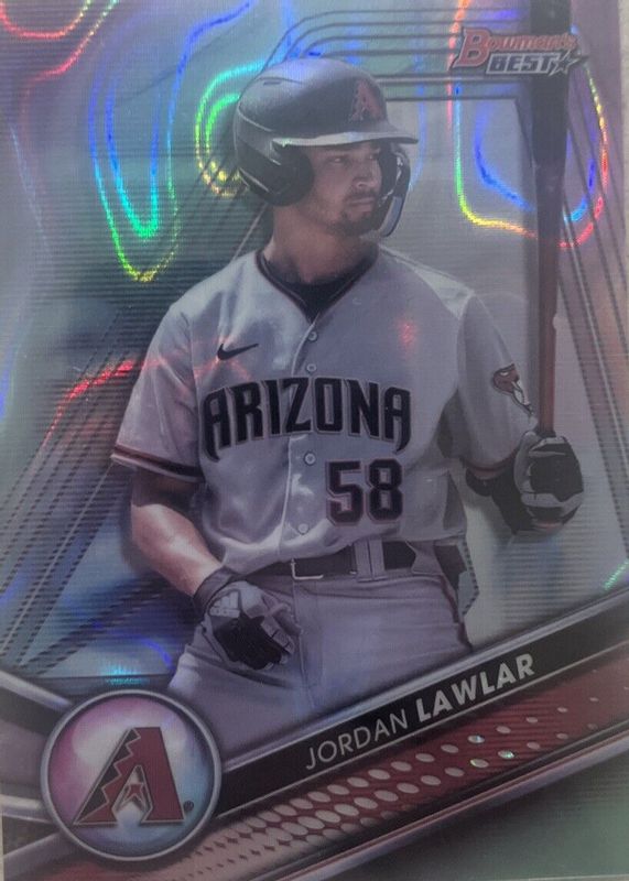 The Jordan Lawlar 2022 Bowman's Best #TP-4 Top Prospects - Aqua Lava Refractor /199 card in Raw condition has not changed in price in the last 30 days and was last sold for $3.39 .