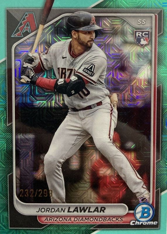 Recent Sales of Jordan Lawlar 2024 Bowman Chrome Mega Box #55 Aqua Mojo Refractor /299 Rookie Raw