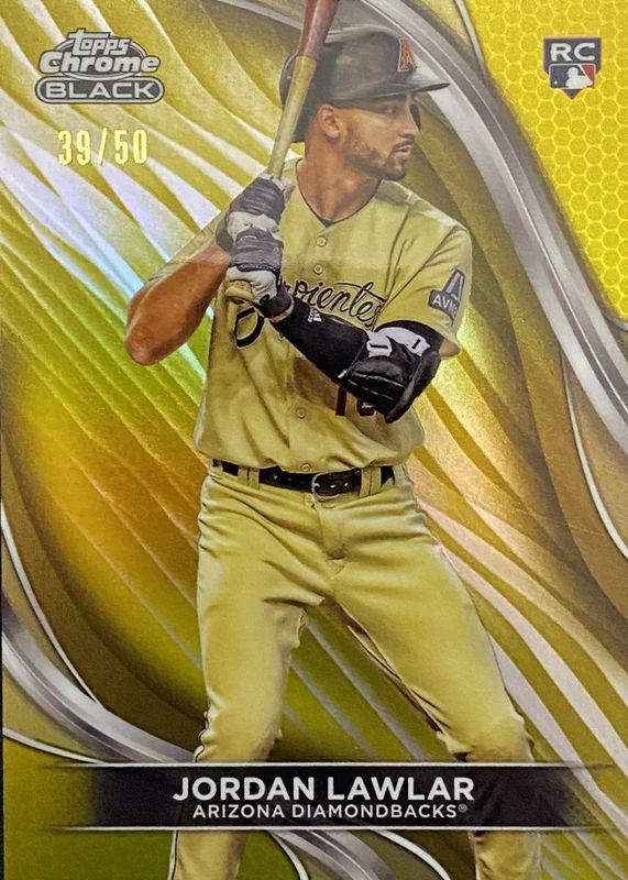 The Jordan Lawlar 2024 Topps Chrome Black #3 Gold Refractor /50 Rookie card in Raw condition has not changed in price in the last 30 days and was last sold for $25.00 .