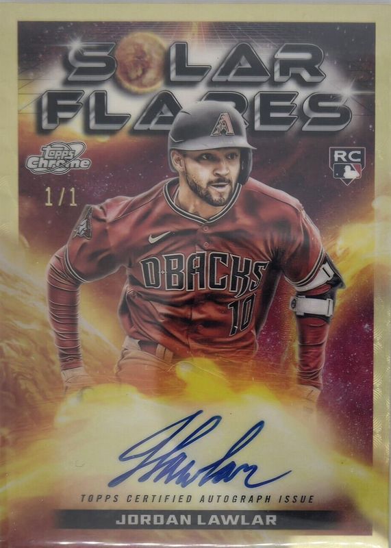 The Jordan Lawlar 2024 Topps Chrome Cosmic #CCA-JLA Autographs - Superfractor /1 Rookie card in Raw condition has not changed in price in the last 30 days and was last sold for $1,050.00 .