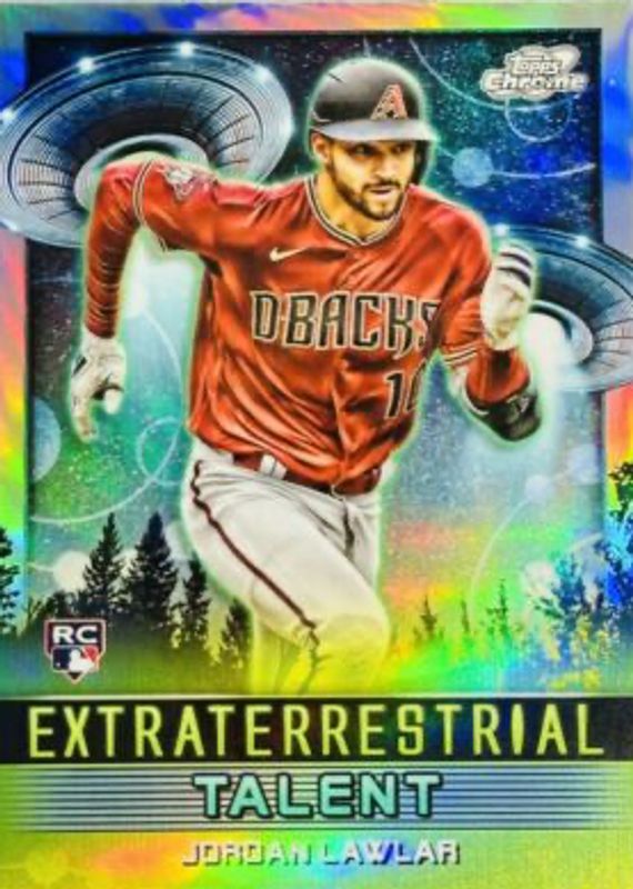 The Jordan Lawlar 2024 Topps Chrome Cosmic #ET-18 Extraterrestrial Talent Rookie card in Raw condition has moved up $18.01 (+905%) in the last 30 days and was last sold for $20.00 .