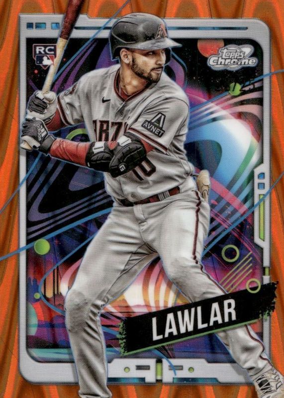 The Jordan Lawlar 2024 Topps Chrome Cosmic #5 Orange Galactic Refractor /25 Rookie card in Raw condition has not changed in price in the last 30 days and was last sold for $49.15 .