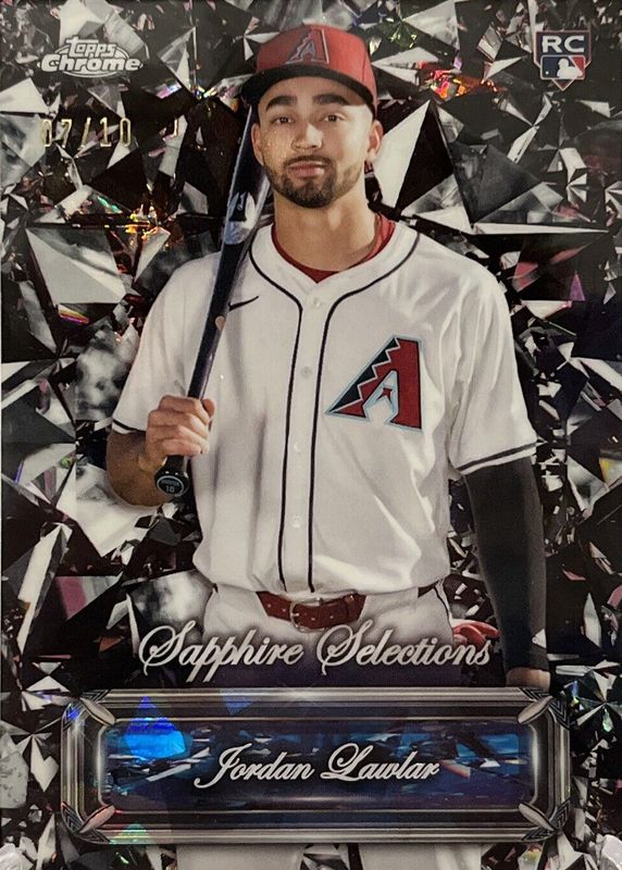 The Jordan Lawlar 2024 Topps Chrome Sapphire Edition #SS-6 Sapphire Selections - Black /10 Rookie card in Raw condition has not changed in price in the last 30 days and was last sold for $83.06 .