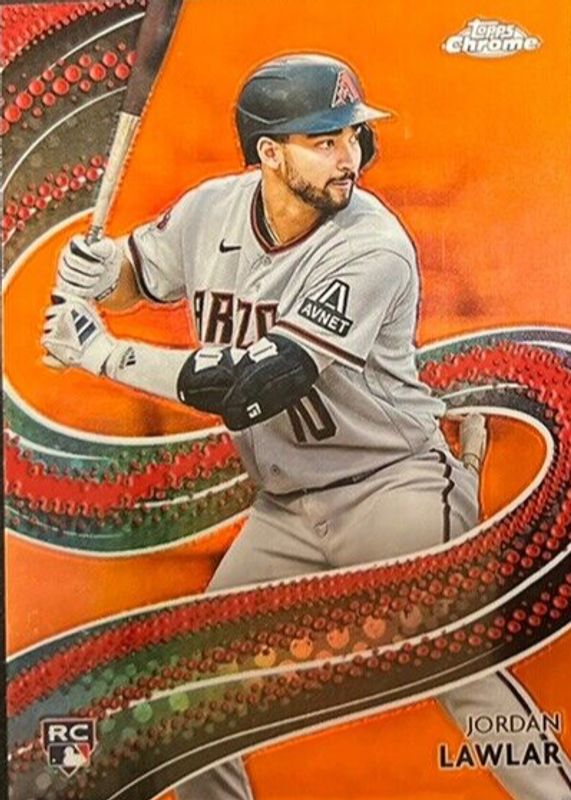The Jordan Lawlar 2024 Topps Chrome #S-25 Strokes - Orange Refractor /25 Rookie card in Raw condition has not changed in price in the last 30 days and was last sold for $10.51 .