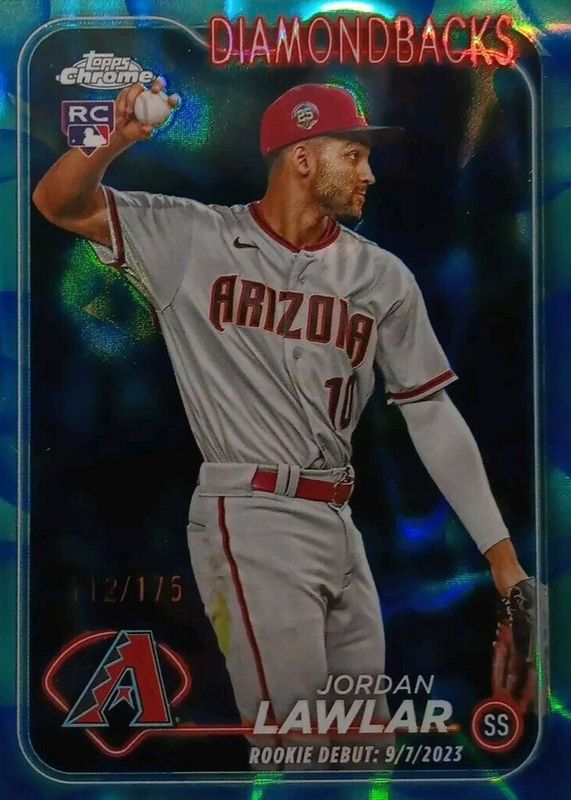 The Jordan Lawlar 2024 Topps Chrome Update #USC51 Rookie Debut - Aqua & Blue Lava Lamp Refractor /175 card in Raw condition has not changed in price in the last 30 days and was last sold for $1.25 .
