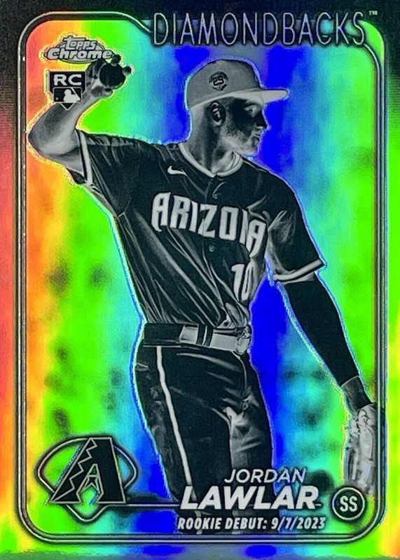 The Jordan Lawlar 2024 Topps Chrome Update #USC51 Rookie Debut - Negative Refractor card in Raw condition has not changed in price in the last 30 days and was last sold for $0.99 .