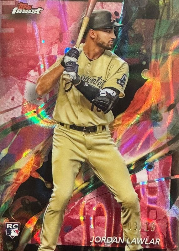 The Jordan Lawlar 2024 Topps Finest #95 Common - Red Lava Refractor /10 Rookie card in Raw condition has not changed in price in the last 30 days and was last sold for $15.51 .