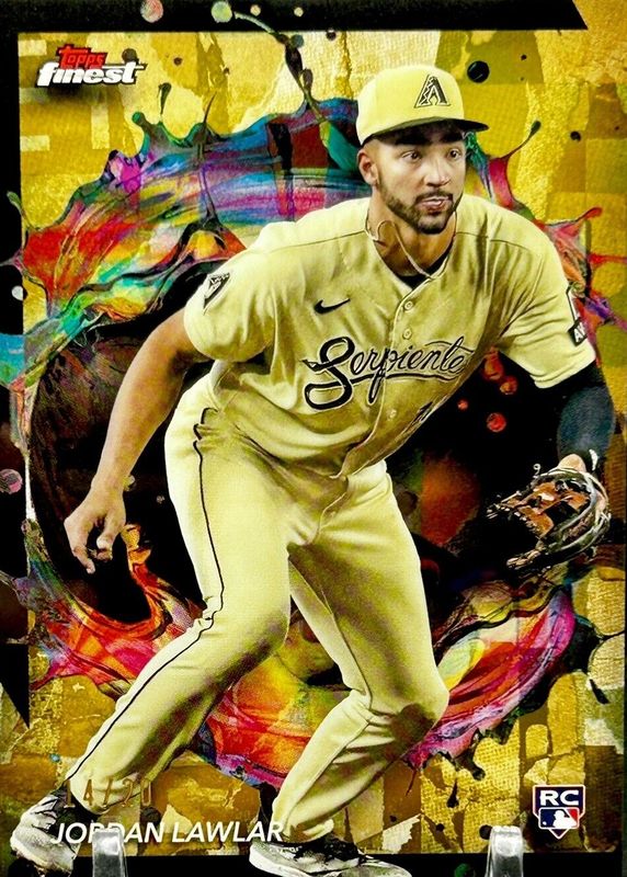 The Jordan Lawlar 2024 Topps Finest #239 Rare - Gold Refractor /20 Rookie card in Raw condition has not changed in price in the last 30 days and was last sold for $27.99 .
