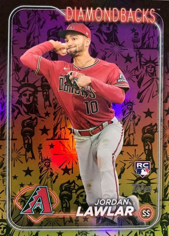The Jordan Lawlar 2024 Topps #451 Statue of Liberty Rookie card in Raw condition has not changed in price in the last 30 days and was last sold for $10.99 .
