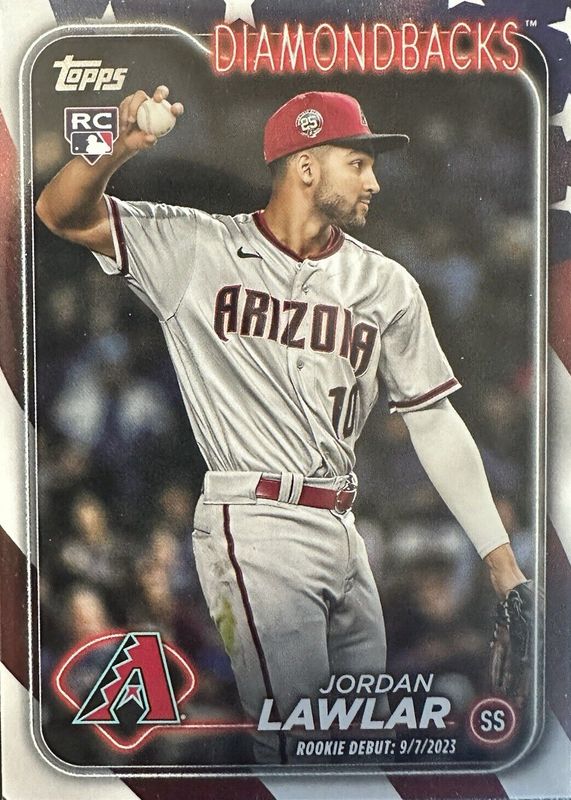 The Jordan Lawlar 2024 Topps Update #US41 Rookie Debut - Independence Day /76 card in Raw condition has not changed in price in the last 30 days and was last sold for $5.99 .