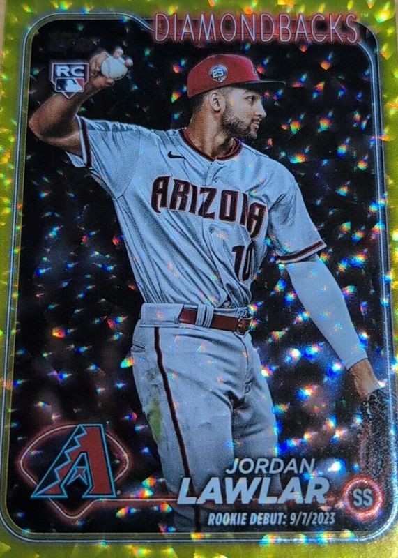 The Jordan Lawlar 2024 Topps Update #US41 Rookie Debut - Yellow Crackle Foilboard /50 card in Raw condition has not changed in price in the last 30 days and was last sold for $13.50 .