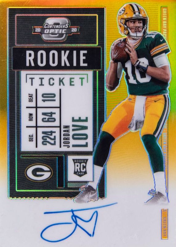 Best Prices Available For Sale of Jordan Love 2020 Contenders Optic #111 Rookie Ticket Auto - Gold /10