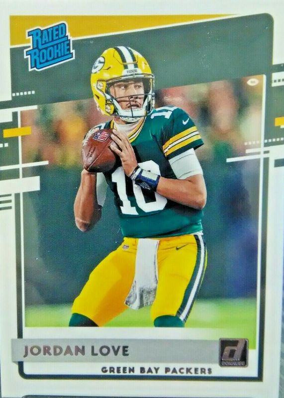 This card is 1 of 43 Jordan Love's card variations in the 2020 Donruss set being tracked by Sports Card Investor, including Base, Canvas, Jersey Number (/10), Press Proof Blue, and Press Proof Bronze.