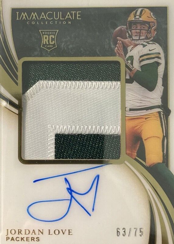 Best Prices Available For Sale of Jordan Love 2020 Immaculate #PPR-JLO Premium Patch Rookie Autographs (/75)