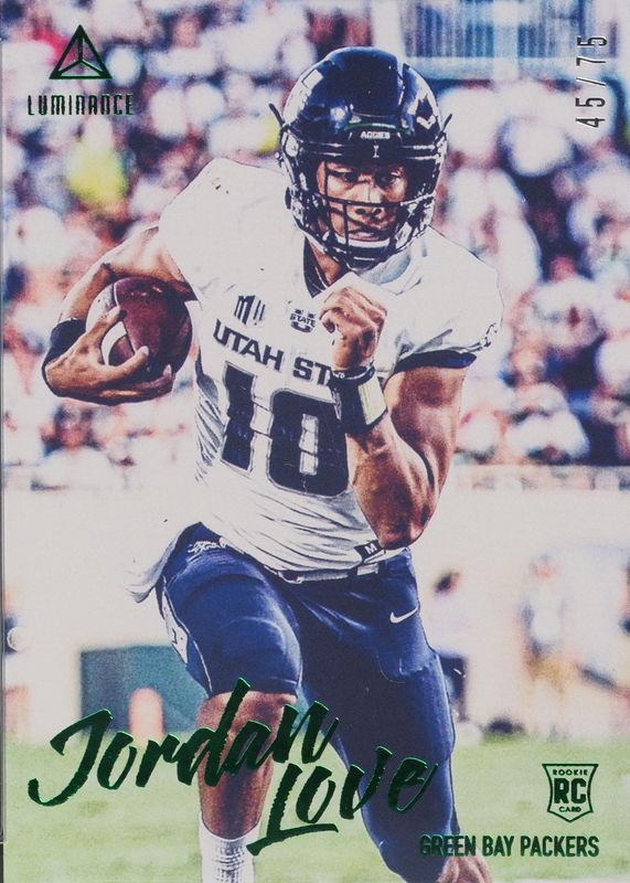 The Jordan Love 2020 Luminance #143 Green /75 Rookie card in Raw condition has not changed in price in the last 30 days and was last sold for $2.25 .