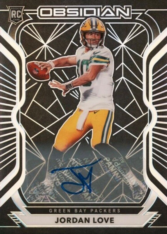 This card is 1 of 21 Jordan Love's card variations in the 2020 Obsidian set being tracked by Sports Card Investor, including Rookie Autographs - Electric Etch Green (/50), Rookie Autographs - Electric Etch Orange (/75), Rookie Autographs - Electric Etch Red (/10), Rookie Autographs - Electric Etch Yellow (/25), and Rookie Jersey Autographs (/150).