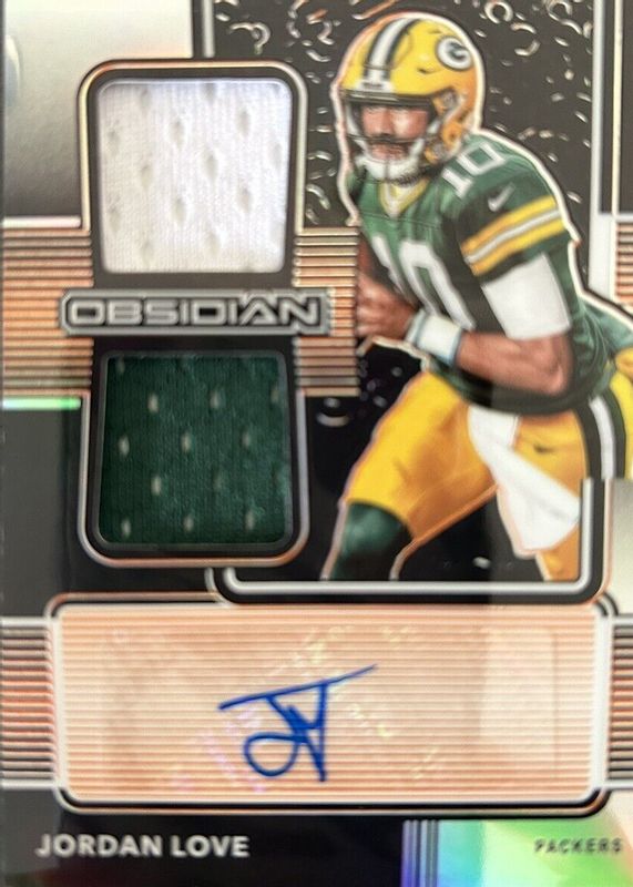 This card is 1 of 21 Jordan Love's card variations in the 2020 Obsidian set being tracked by Sports Card Investor, including Rookie Autographs (/150), Rookie Autographs - Electric Etch Green (/50), Rookie Autographs - Electric Etch Orange (/75), Rookie Autographs - Electric Etch Red (/10), and Rookie Autographs - Electric Etch Yellow (/25).