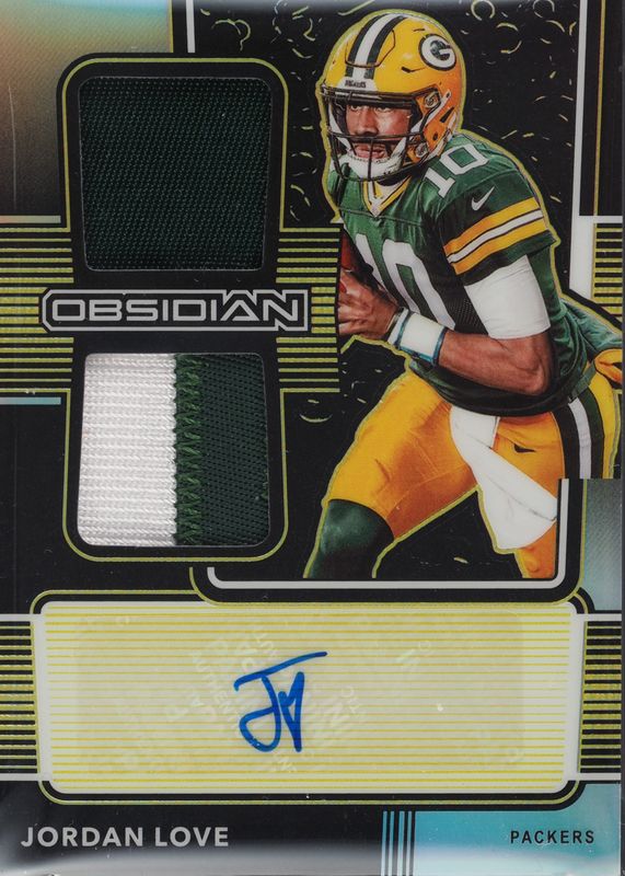 This card is 1 of 21 Jordan Love's card variations in the 2020 Obsidian set being tracked by Sports Card Investor, including Rookie Autographs (/150), Rookie Autographs - Electric Etch Green (/50), Rookie Autographs - Electric Etch Orange (/75), Rookie Autographs - Electric Etch Red (/10), and Rookie Autographs - Electric Etch Yellow (/25).