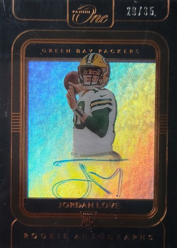 The Jordan Love 2020 One #104 Rookie Autographs - Bronze (/35) card in Raw condition has not changed in price in the last 30 days and was last sold for $350.00 .