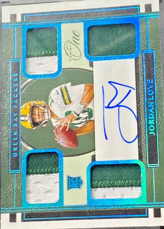 2020 Panini One #74 JORDAN LOVE Quad Patch Rookie Auto RPA Blue Encased #d/35