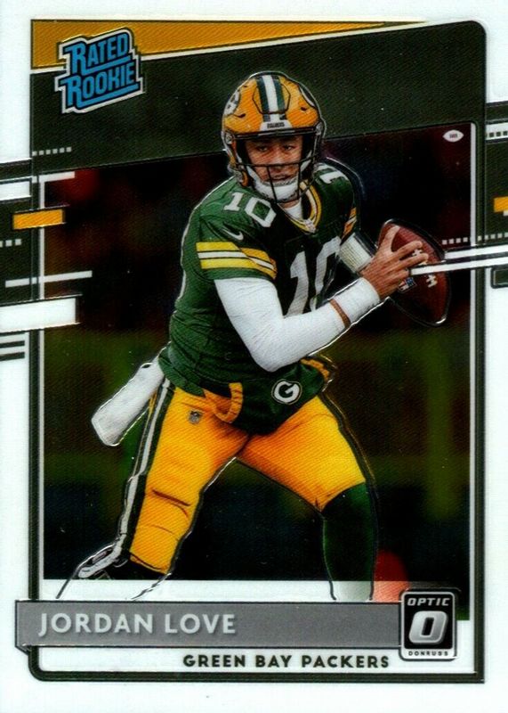 The Jordan Love 2020 Optic #154 Base Rookie card in Raw condition has moved up $1.00 (+25.0%) in the last 30 days and was last sold for $5.00 .