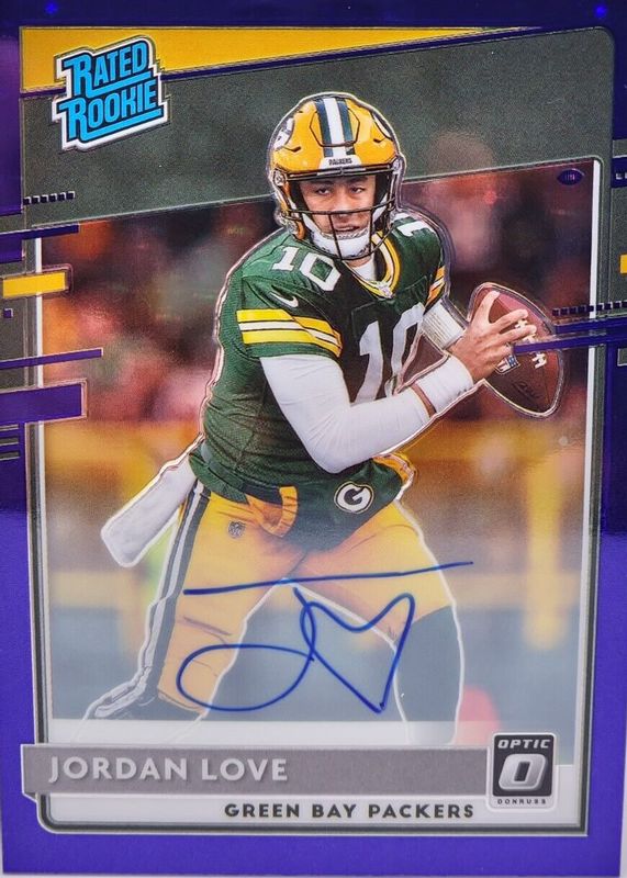 Best Prices Available For Sale of Jordan Love 2020 Optic #154 Rated Rookie Autographs - Purple Stars /50