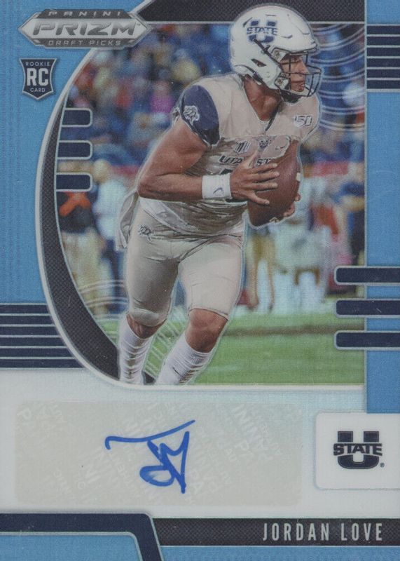 This card is 1 of 26 Jordan Love's card variations in the 2020 Prizm Draft Picks set being tracked by Sports Card Investor, including Base, Silver, Autographs - Green, Autographs - Hyper (/75), and Autographs - Hyper (/50).