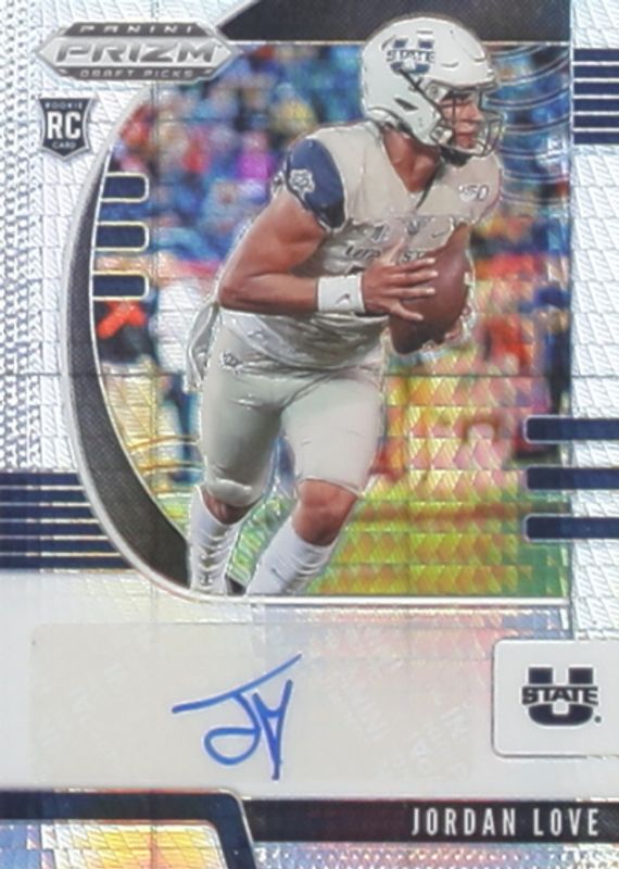 This card is 1 of 26 Jordan Love's card variations in the 2020 Prizm Draft Picks set being tracked by Sports Card Investor, including Base, Silver, Autographs - Blue, Autographs - Green, and Autographs - Hyper (/50).