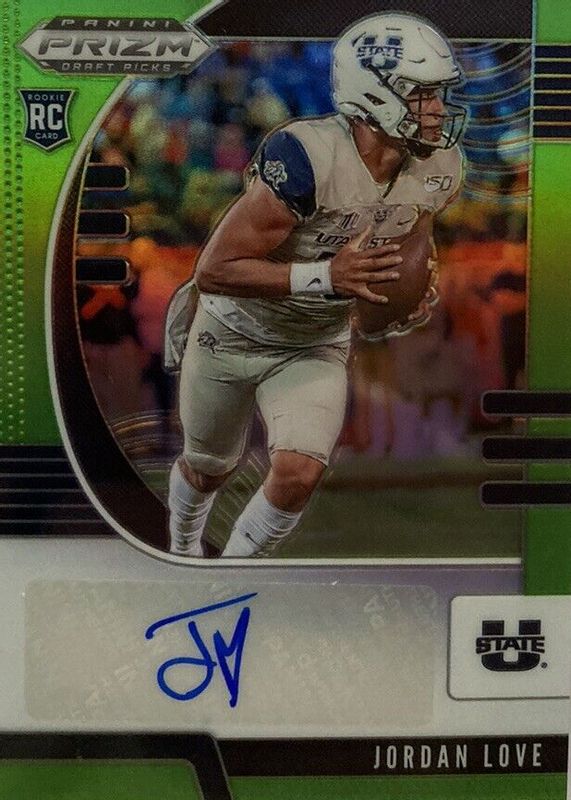The Jordan Love 2020 Prizm Draft Picks #148 Autographs - Neon Green (/25) Rookie card in Raw condition has not changed in price in the last 30 days and was last sold for $200.00 .