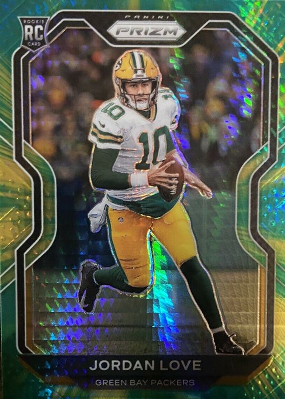 This card is 1 of 69 Jordan Love's card variations in the 2020 Prizm set being tracked by Sports Card Investor, including Base, Disco, Green, Lazer, and Light Blue.