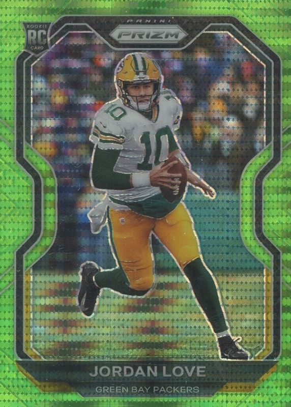 2020 PANINI PRIZM #363 JORDAN LOVE NEON GREEN PULSAR RC ROOKIE