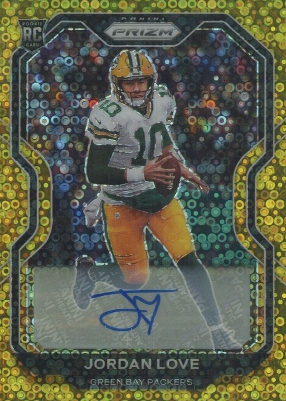This card is 1 of 69 Jordan Love's card variations in the 2020 Prizm set being tracked by Sports Card Investor, including Base, Disco, Green, Lazer, and Light Blue.