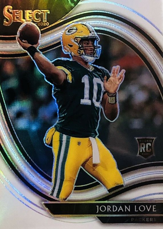 The Jordan Love 2020 Select #347 Field Level White /35 Rookie card in Raw condition has not changed in price in the last 30 days and was last sold for $98.40 .