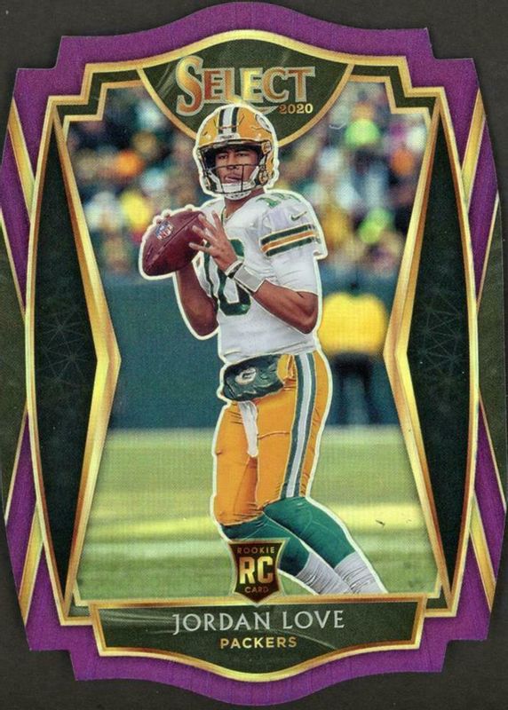 The Jordan Love 2020 Select #147 Premier Level Purple Die-Cut Rookie card in Raw condition has moved up $9.49 (+211%) in the last 30 days and was last sold for $13.99 .