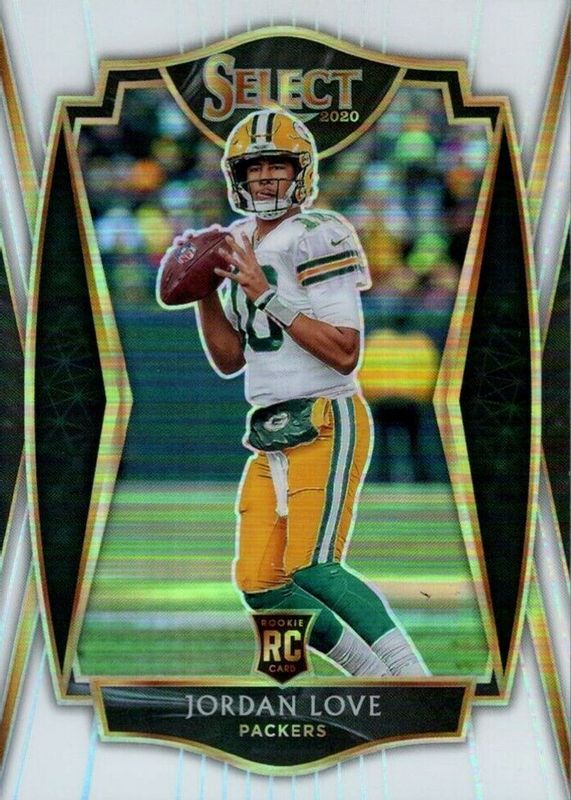 JORDAN LOVE - 2020 Panini Select Premier Level White PRIZM SSP RC #147 /35