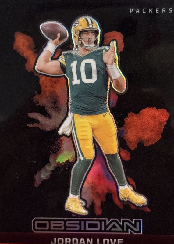 This card is 1 of 2 Jordan Love's card variations in the 2024 Obsidian set being tracked by Sports Card Investor, including Vitreous /(SSP).