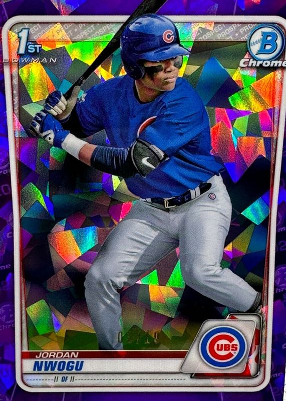 The Jordan Nwogu 2020 Bowman Draft Sapphire Edition #BD-110 Chrome - Purple /10 (1st) card in Raw condition has not changed in price in the last 30 days and was last sold for $10.50 .