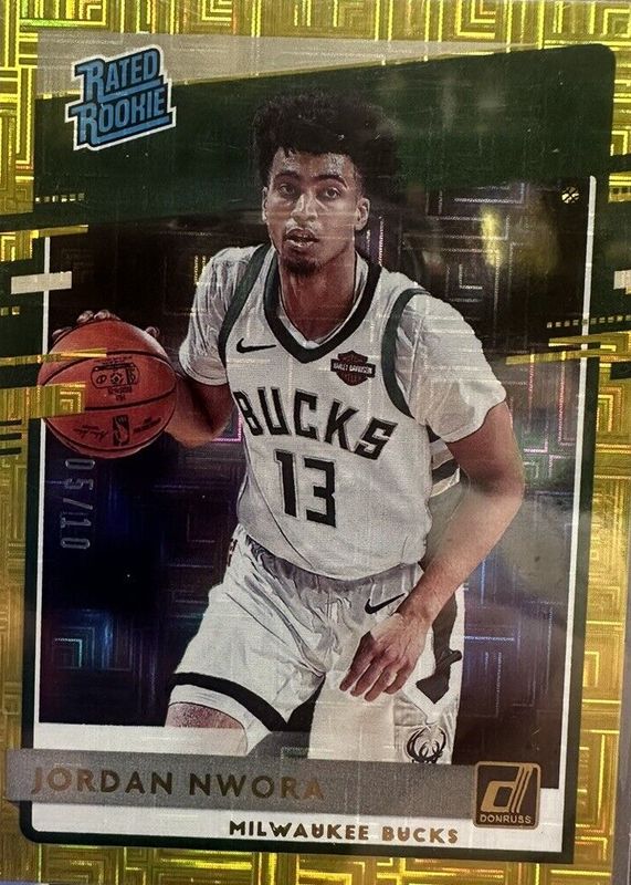 The Jordan Nwora 2020 Donruss #220 Choice Gold /10 Rookie card in Raw condition has not changed in price in the last 30 days and was last sold for $11.50 .