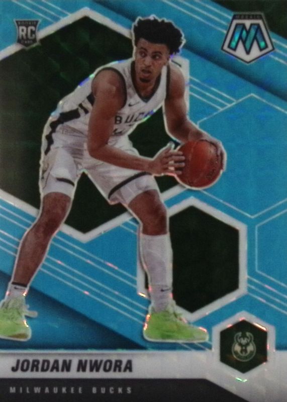 The Jordan Nwora 2020 Mosaic #219 Blue Fluorescent /15 Rookie card in Raw condition has not changed in price in the last 30 days and was last sold for $27.87 .