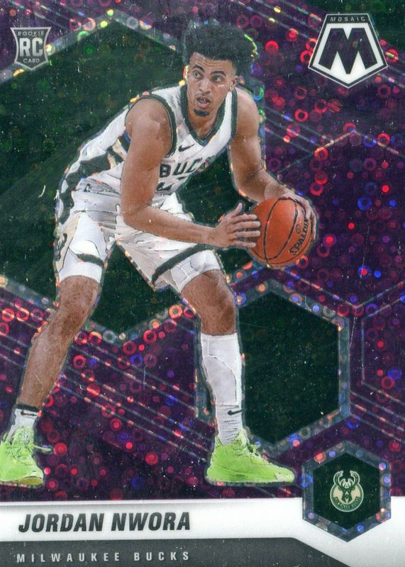 The Jordan Nwora 2020 Mosaic #219 Fast Break Purple /50 Rookie card in Raw condition has not changed in price in the last 30 days and was last sold for $4.99 .