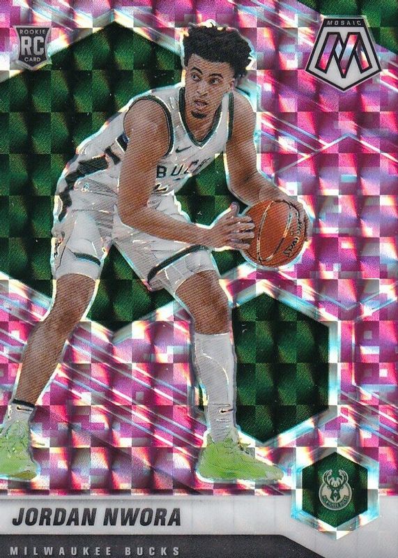 2020-21 Panini Mosaic Jordan Nwora RC Pink Camo Prizm Rookie Bucks #219 Nba