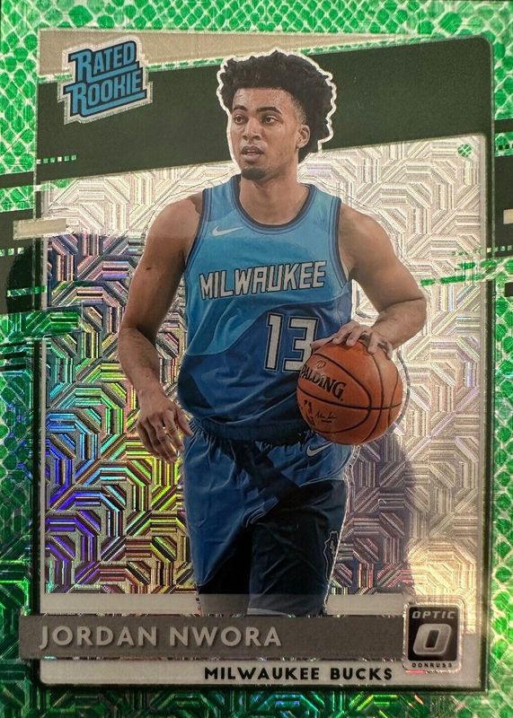 The Jordan Nwora 2020 Optic #189 Choice Dragon /(SSP) Rookie card in Raw condition has not changed in price in the last 30 days and was last sold for $3.76 .