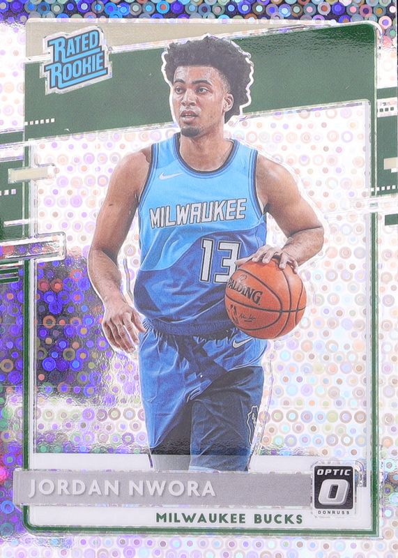 This card is 1 of 62 Jordan Nwora's card variations in the 2020 Optic set being tracked by Sports Card Investor, including Base, Blue Pulsar, Blue Velocity, Checkerboard, and Choice.