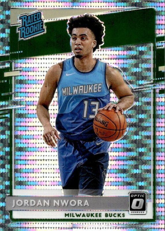 JORDAN NWORA Rated Rookie Silver Pulsar Prizm 2020-2021 Optic 189 Pacers Bucks