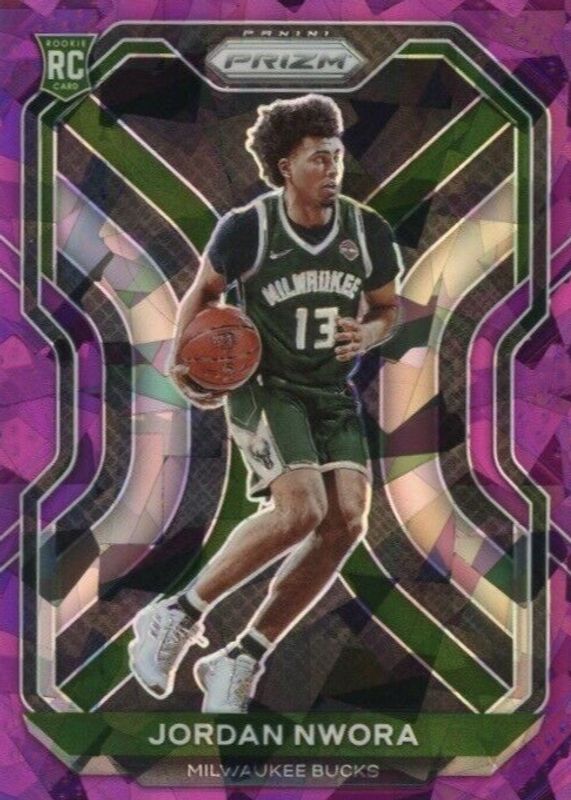 2020-21 Panini Prizm JORDAN NWORA /175 Purple Cracked Ice Rookie RC #273 Bucks