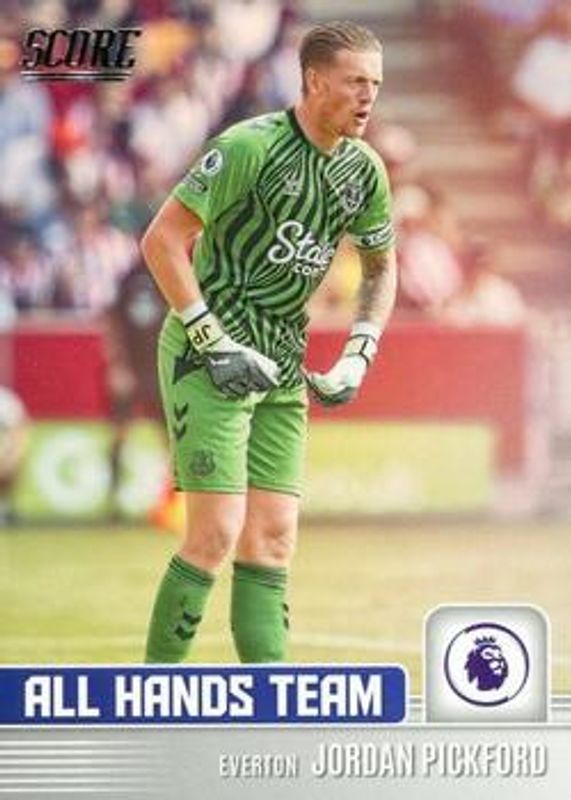 Jordan Pickford 2022 Score Premier League #5 All Hands Team RAW Price Guide