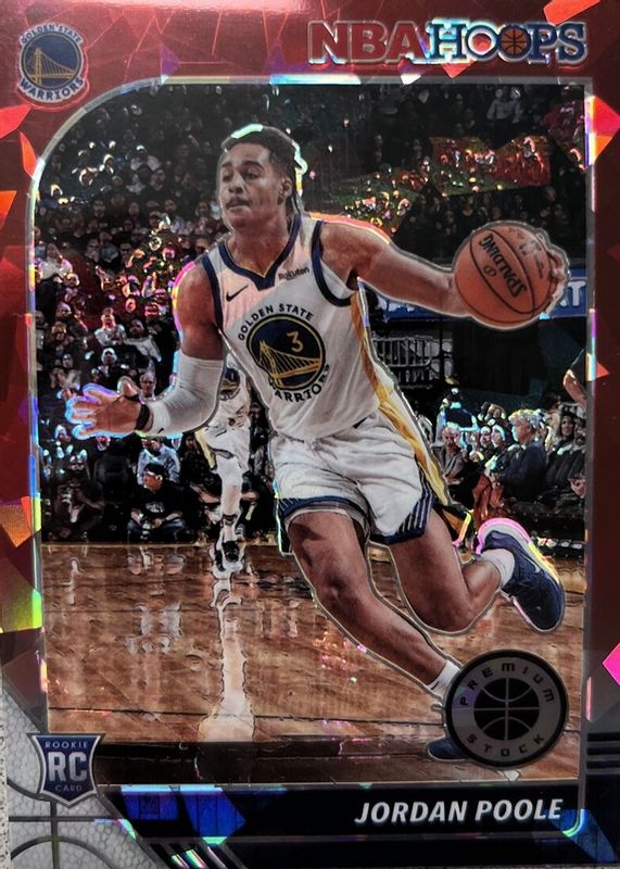The Jordan Poole 2019 Hoops Premium Stock #223 Red Cracked Ice Rookie card in Raw condition has not changed in price in the last 30 days and was last sold for $0.99 .