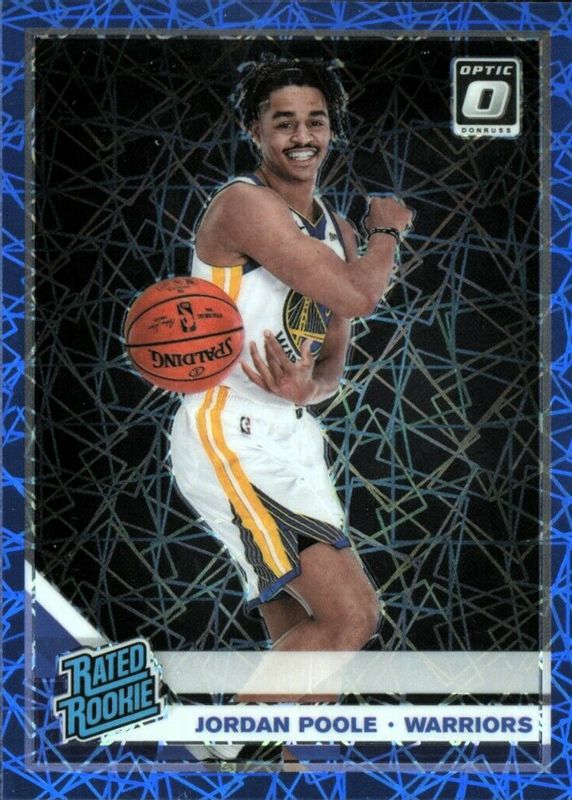 The Jordan Poole 2019 Optic #169 Blue Velocity Rookie card in Raw condition has moved up $1.88 (+190%) in the last 30 days and was last sold for $2.87 .