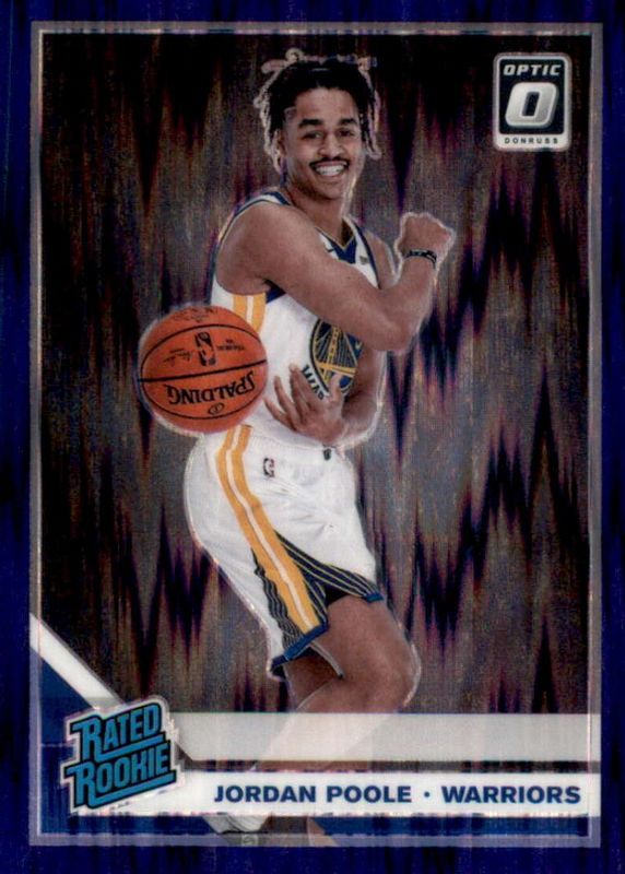 The Jordan Poole 2019 Optic #169 Purple Shock Rookie card in Raw condition has not changed in price in the last 30 days and was last sold for $2.50 .