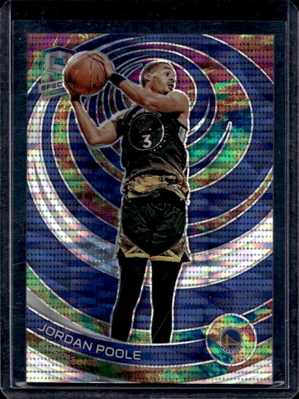 The Jordan Poole 2022 Spectra #65 Celestial /149 card is 1 of 29 Jordan Poole's card variations in the 2022 Spectra set being tracked by Sports Card Investor, including Base, Asia, Asia Black & White, Asia Green, and Asia Red.